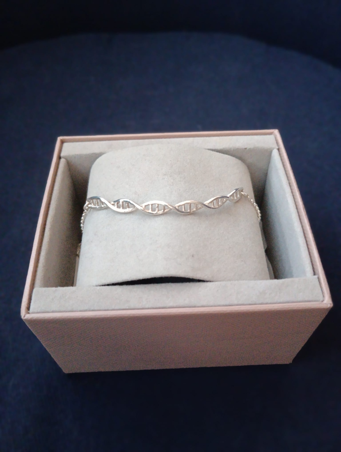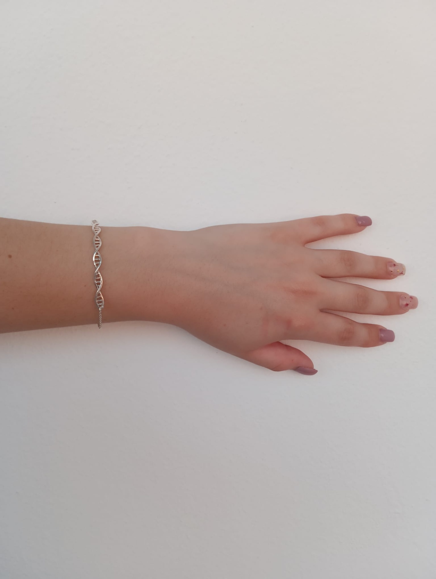 Pulseira DNA 46,00 € Desconto de %. Partilhar O produto encontra-se sem stock. INFORMAÇÕES DO PRODUTO: Molécula de DNA com 5 cm, correntes de elo português e fecho mola. Tamanho regulável. Prata. Garantia de 1 ano.